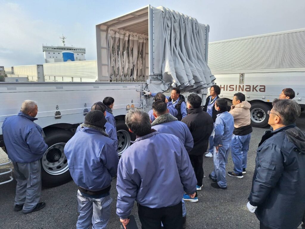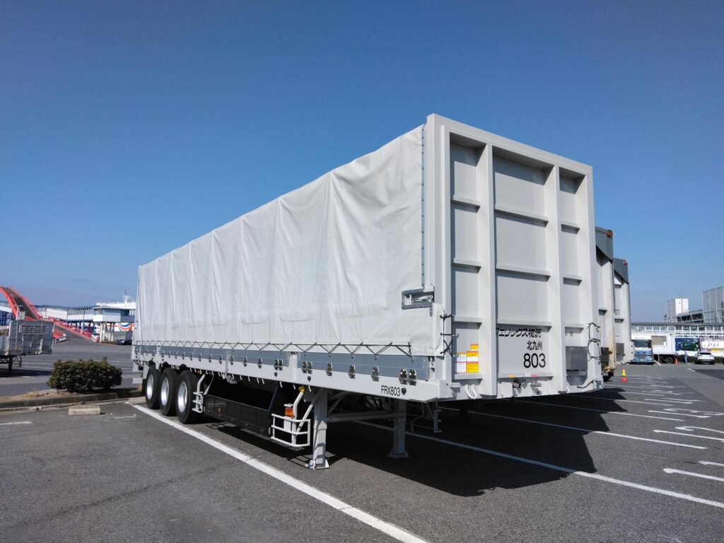 この度、オープンスライダー車輌を4台導入しました。導入により平台車でのシート掛けにかかわるドライバーの重労働が軽減されることを見込んでおります。